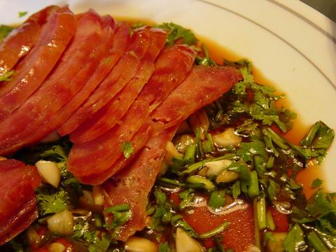 這盤小黃瓜和牛肉絲都是小灣媽媽的好刀工,滿滿地一盤要尖出來,讓人吃得開懷又過癮!