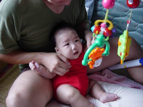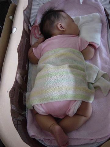 時光飛快,九月四日灣灣就來到我們家三個月了。雖然她愈來愈重,抱得大家手痛腰痠,可是她的順利成長和可愛模樣也帶給我們無限的歡欣,讓我們覺得一切辛苦都是值得的。