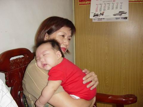 不知道是不是為了報答外公外婆不辭勞苦前來探望,本來最討厭人家坐著抱她的灣灣居然就這樣在小瑞媽媽懷裡睡著了