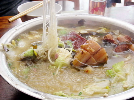 「清油」,說穿了,就是菜籽油,不過相較於我們在台灣吃到的「菜籽油」,清油少了精煉的手續,所以看起來一點都不滴滴精純,反而像濃濁咖啡油調了點淡淡的綠。因為沒有精煉,所以清油的保存期限不長。但也是因為這種近乎現榨現用的工法,造就了清油的濃郁香氣。一般我們用沙拉油炒菜,通常要食材下鍋了才聞得到烹煮的鍋氣;而用清油的話,卻是在熱油鍋時就香味撲鼻了。也因此,在四川,傍晚時分的巷弄裡總充滿著清油熱鍋的濃香,若剛好有人家趁油熱得冒煙時,將花椒辣椒乒乓下鍋,那股嗆辣又醇厚的味道,等於向人宣佈川菜國度的精彩好戲即將一一開展!我常在這樣鋪天蓋地的油鍋香中踽踽前行,想著中國人所料理的食物大致相仿,卻又各有致趣,不禁發出會心的一笑...