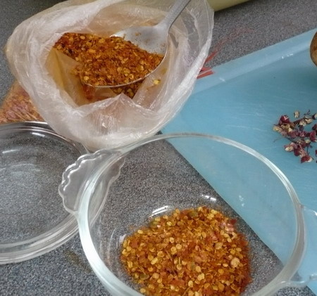 1. 找一個有蓋的玻璃器皿,倒入適量的辣椒粉