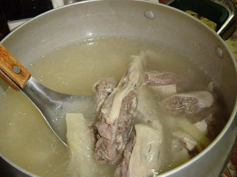 2. 第一次肉湯滾時會有很多浮末,用大湯匙盡力撈乾淨